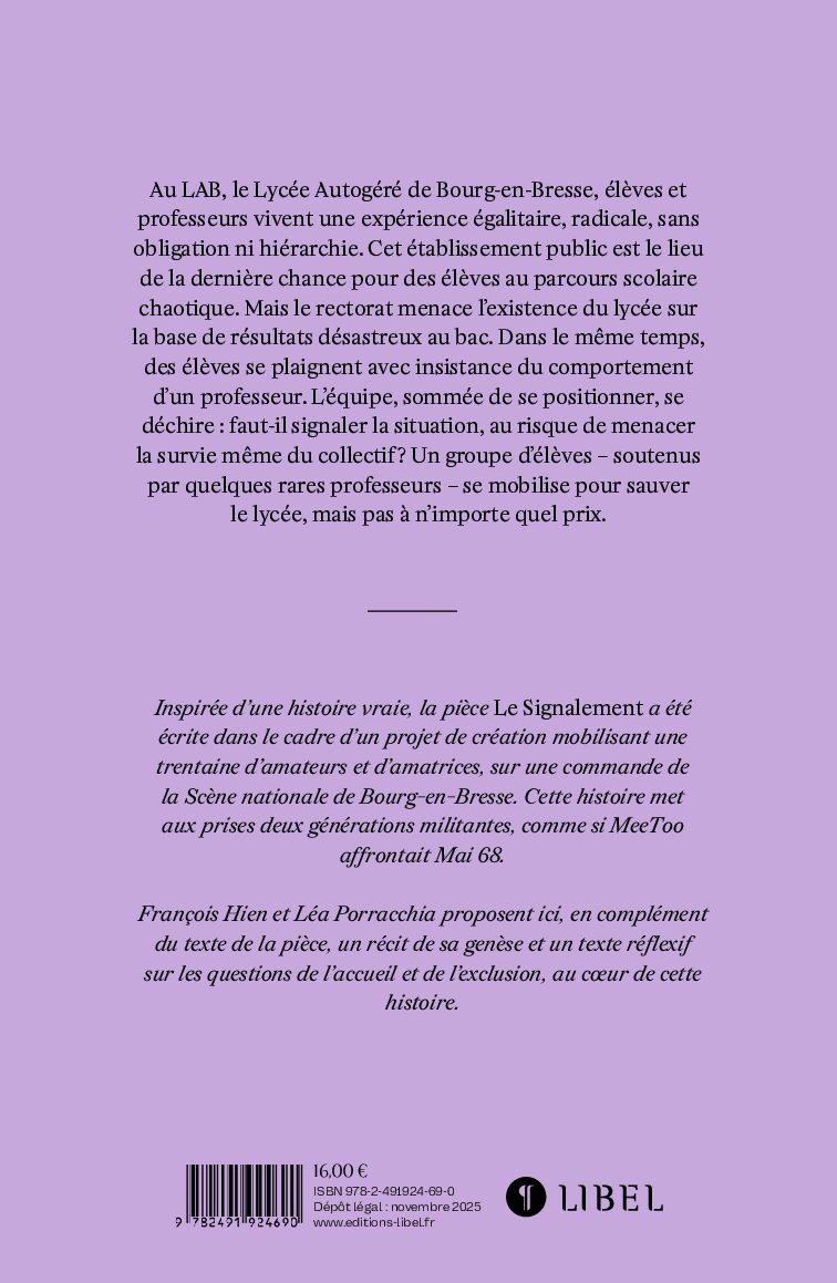 Inspirée d’une histoire vraie, la pièce Le Signalement a été écrite dans le cadre d’un projet de création mobilisant une trentaine d’amateurs et d’amatrices, sur une commande de la Scène nationale de Bourg-en-Bresse. Cette histoire met aux prises deux générations militantes, comme si MeToo affrontait Mai 68.